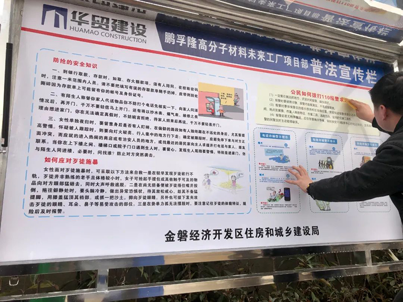 為進(jìn)一步增加務(wù)工人員的法律意識(shí),提高務(wù)工人員依法維權(quán)的能力和法律素質(zhì),復(fù)工后,鵬孚隆高分子材料未來(lái)工廠項(xiàng)目部聯(lián)合金磐經(jīng)濟(jì)開(kāi)發(fā)區(qū)住建局在該項(xiàng)目部設(shè)立了一組普法宣傳欄。在項(xiàng)目部設(shè)置普法宣傳欄,不僅可以向務(wù)工人員宣傳法律知識(shí),也可以使務(wù)工人員認(rèn)識(shí)到掌握法律知識(shí)的重要性,讓大家知法、懂法、守法,促進(jìn)項(xiàng)目部的和諧穩(wěn)定。